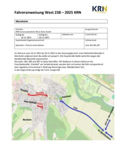 Die Kreuzung muss vom 10.12.2025 bis voraussichtlich 19.12.2025, mindestens für den Bus- und Schwerlastverkehr gesperrt werden.