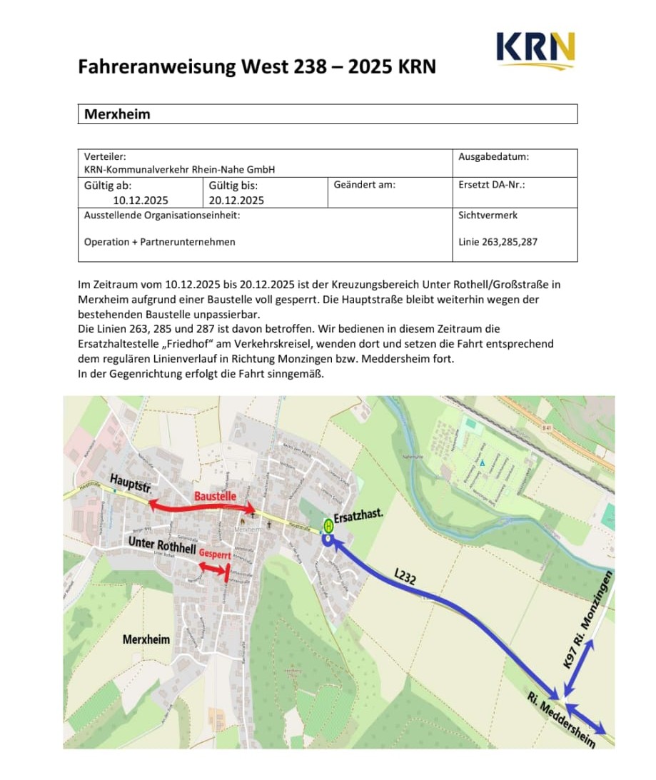 Die Kreuzung muss vom 10.12.2025 bis voraussichtlich 19.12.2025, mindestens für den Bus- und Schwerlastverkehr gesperrt werden.