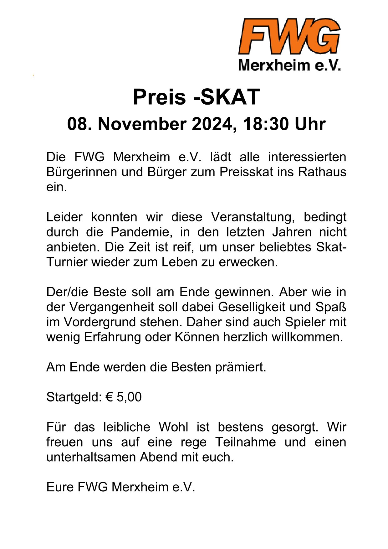 Einladung FWG Preisskat 08.11.2024 18.30 Uhr