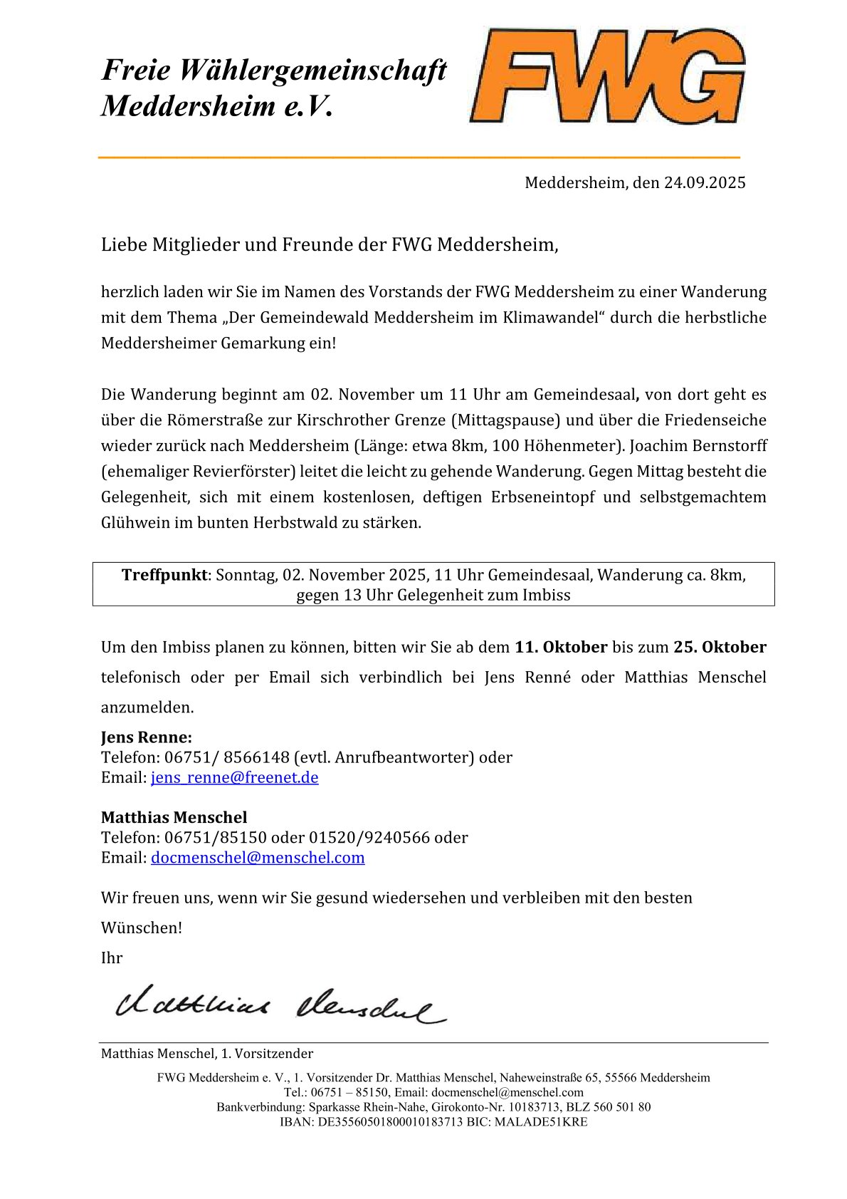 Einladung Herbstwanderung FWG Meddersheim am 02.11.2025