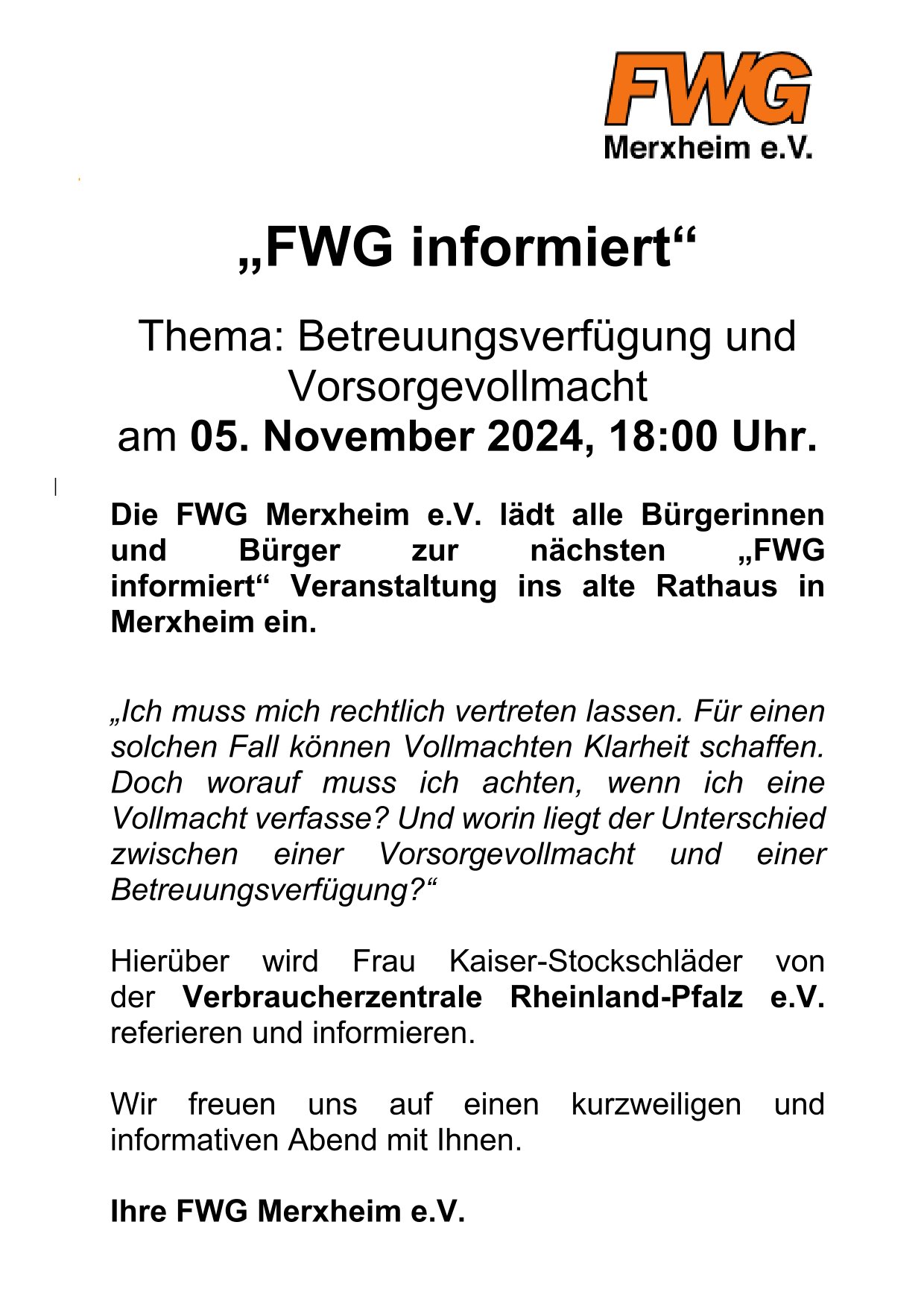 Betreuungsverfügung und Vorsorgevollmacht 05.11.2024 18.00 Uhr